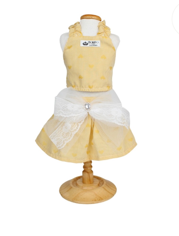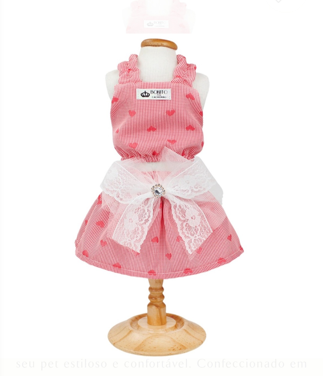 O Conjunto Coração é a peça ideal para manter o seu pet estiloso e confortável. Confeccionado em tecido xadrez com detalhes de coração e um lindo laço de tule com renda. O Conjunto possui Velcro na barriga e elástico nas alças para melhor vestir seu pet. Modelo Amarulla.