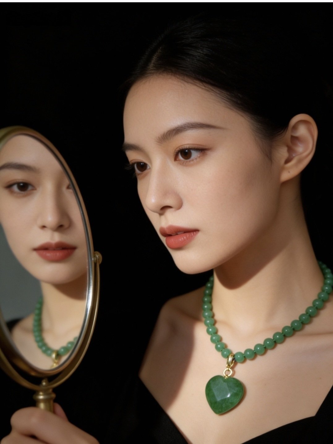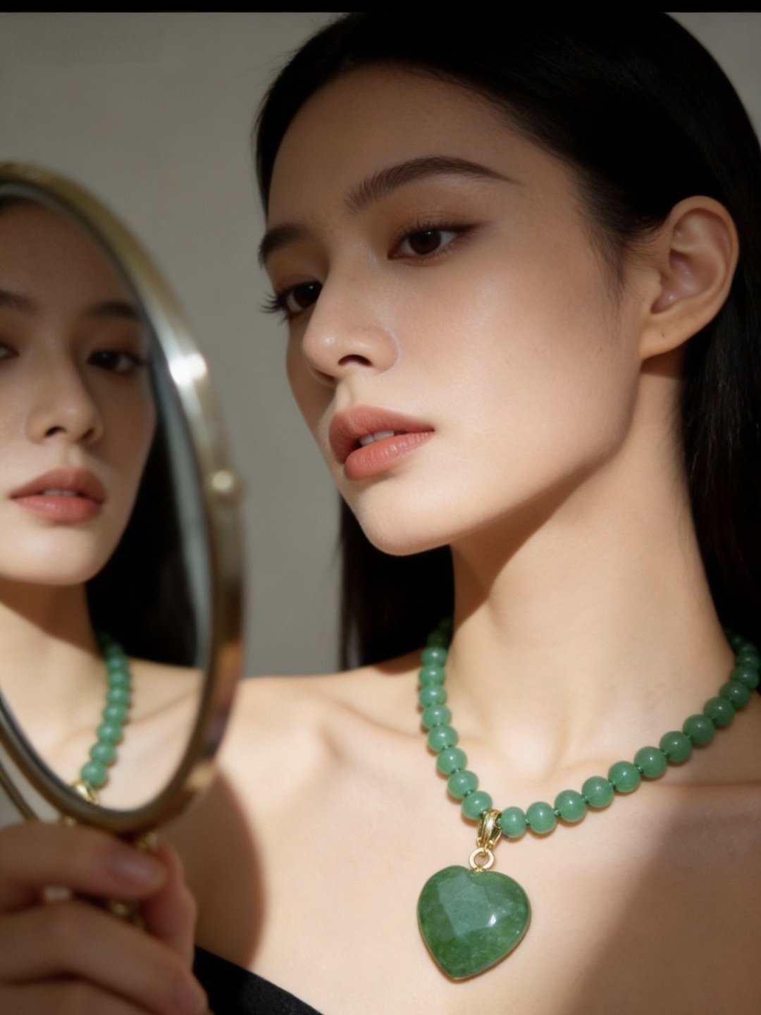 Um pingente todo na pedra Jade, com lapidação briolet.