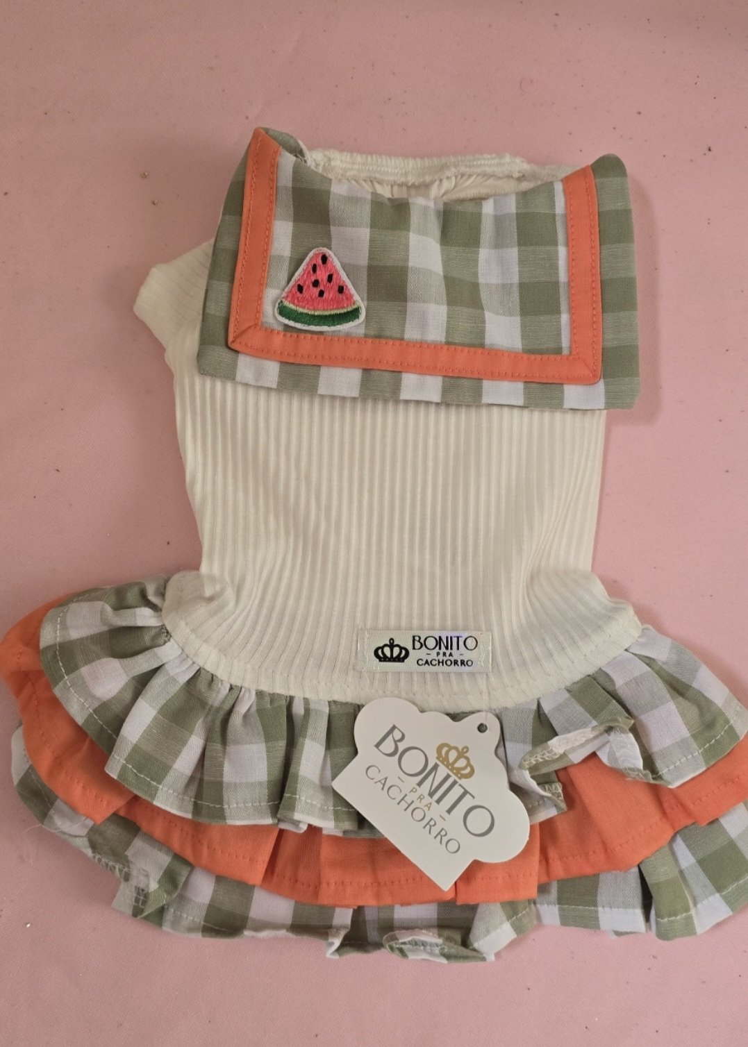 O Vestido Malha Frutas é a peça ideal para manter o seu pet estiloso e confortável. Com sua modelagem diferenciada, o Vestido é confeccionado em cotton com detalhes em tecido 100% algodão. Com seu tecido leve e diferenciado, o vestido é a peça ideal para deixar o seu pet estiloso e confortável mesmo em dias mais quentes.
